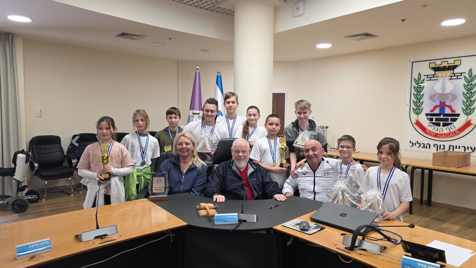 ראש עיריית נוף הגליל, רונן פלוט אירח בלשכתו את נבחרת הקשתים הצעירה, שחזרה מאליפות ישראל עם 10 מדליות