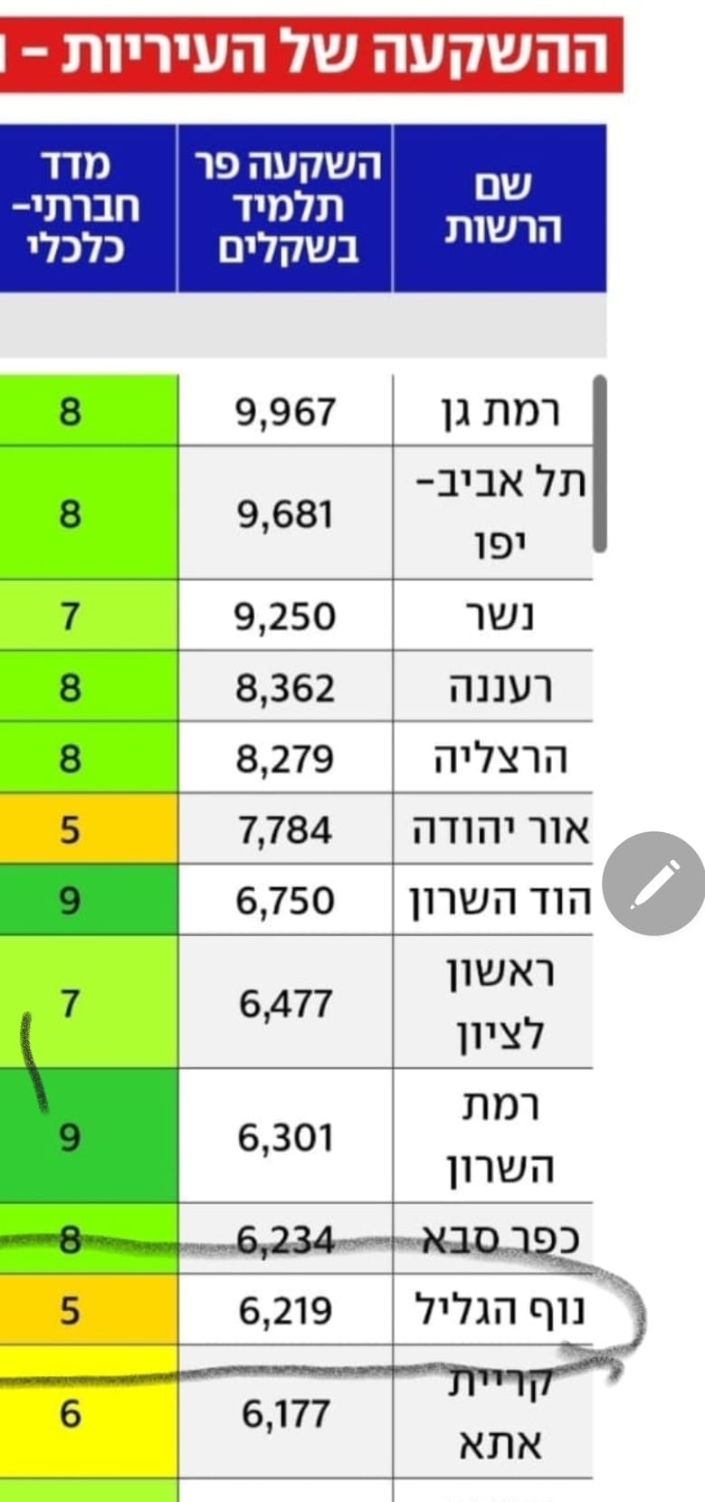 עיריית נוף הגליל משקיעה בכל תלמיד 6,219 שקלים בנוסף לתקציב משרד החינוך