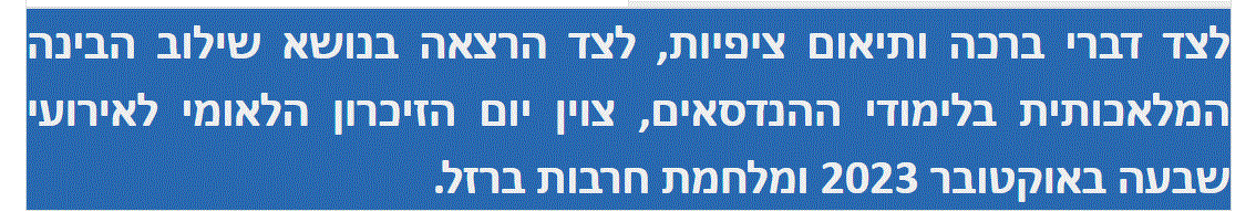 לצד דברי ברכה ותיאום ציפיות, לצד הרצאה בנושא שילוב הבינה המלאכותית בלימודי ההנדסאים, צוין יום הזיכרון הלאומי לאירועי שבעה באוקטובר 2023 ומלחמת חרבות ברזל.