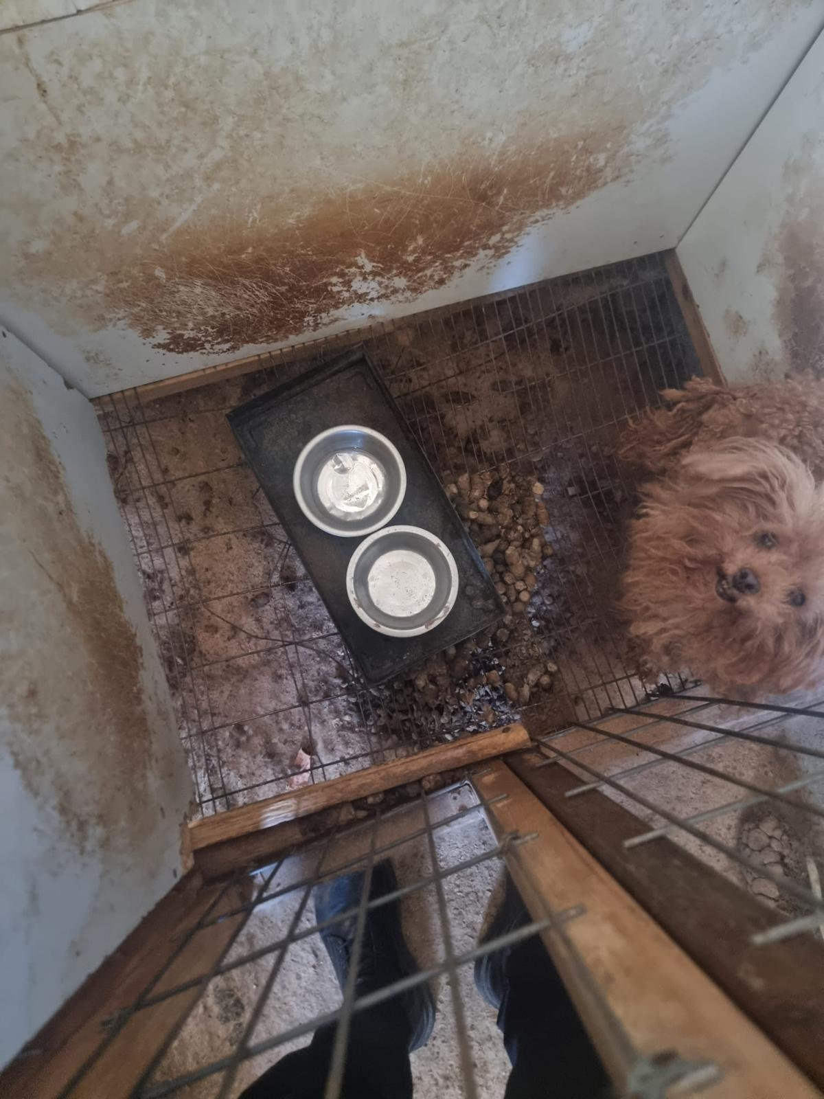 משטרת ישראל, מצאו המפקחים כלבים המוחזקים בכלובים קטנים שאינם מתאימים לגודלם, בצפיפות ובתנאי הזנחה חמורים: באחד הכלובים נמצאו כעשרה כלבים מוחזקים יחד, כאשר תחתית הכלוב מלאה בצואה ובפרווה שנדבקה לתחתית הכלוב. הכלבים הוחזקו בסביבה מוזנחת ומזוהמת. בכלוב נוסף נמצאו ארבעה כלבים, כשהם שוכבים בתוך הצרכים של עצמם.