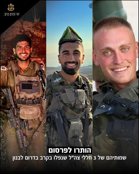 ארבעה לוחמים מחטיבת הנח"ל נפלו אמש (ב') בקרב בדרום לבנון. הבוקר הותרו לפרסום שמותיהם של שלושה מהם: