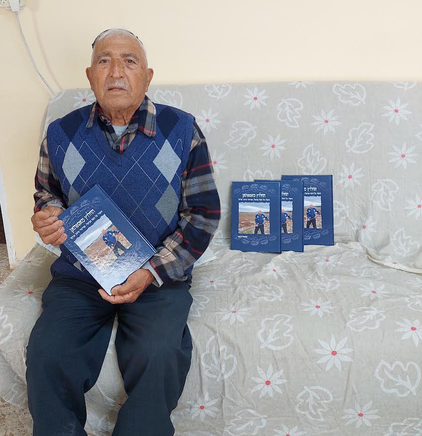 כיתוב תמונה: משה אביטלי אוחז בספר " החלוץ מאיספהן" בודק בימים אלה את תוקף דרכונו